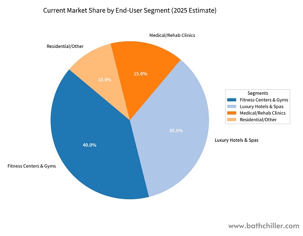 Luxury Hotels & Spas 35% Creating unique guest experiences (e.g., thermal cycling: sauna + ice bath). All-in-One Smart Chiller Ultra & Luxury Cold Plunge: Aesthetically premium, quiet operation.